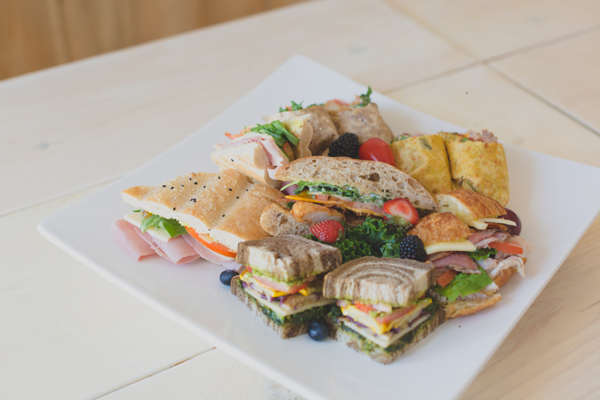 On assorted specialty sandwich bread. +1.00 for gluten-free option | Disposable plates, cutlery, and napkins $1.00/pp